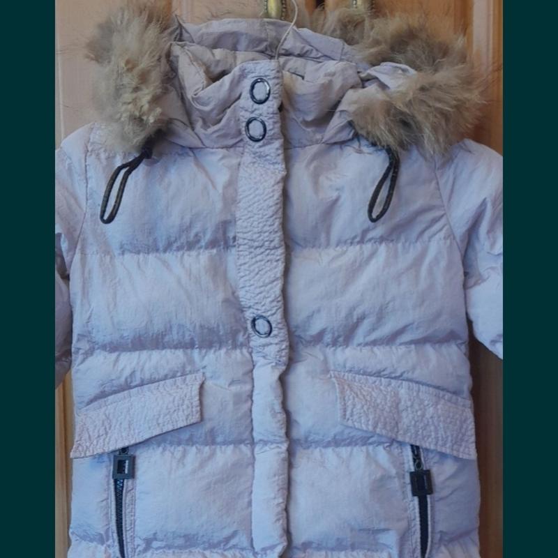 Тепла курточка в ідеальному стані, без жодних дефектів. Заміри: довжина від плеча 47 см, рукав 37 см, ширина під ручками 41 см. Колір бузковий.