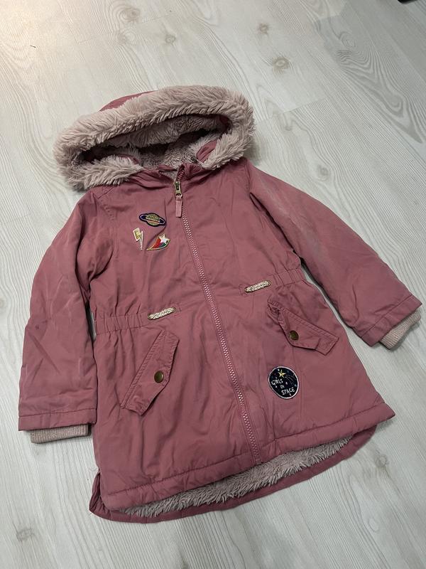 Куртка демисезонная для девочки 4-5 лет. Ткань парка на меху. Стан хороший. Замеры: грудь полхват - 37 см, рукав 39 см, плечи 29см, длина изделия от плеча по спине 54см.