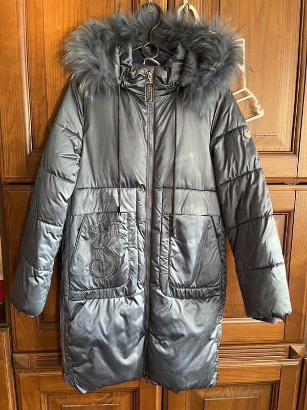 Зимова куртка на дівчинку 152 розмір. Холофайбер. Колір сірий металік-синій. Має відлив як хамелеон.