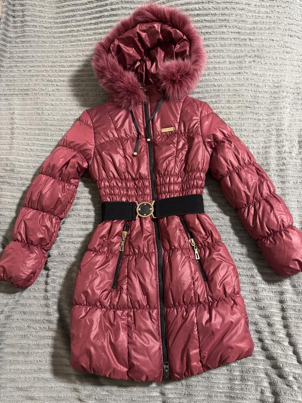 Зимова куртка для дівчинки, 164 розмір Зйомний каптур та пояс. Трішки стерлась позолота із замків Довжина - 81 см Довжина рукава - 57 см Ширина - 38 см