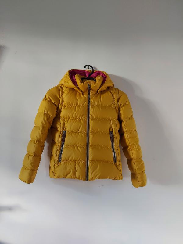 Яскрава практична пухова куртка з рукавами, що відстібаються для осінньої прохолоди і теплої зими Рукава пристібаються блискавкою Водовідштовхувальний, вітронепроникний, "дихаючий" і брудовідштовхуючий матеріал Безпечний знімний капюшон Еластичні манжети, еластичний поділ Дві кишені на блискавці світловідбиваючі деталі.Розмір-140.Потребує мінімальної хімчистки ,бо одягнена декілька разів і не прали,бо пухова.)Легка