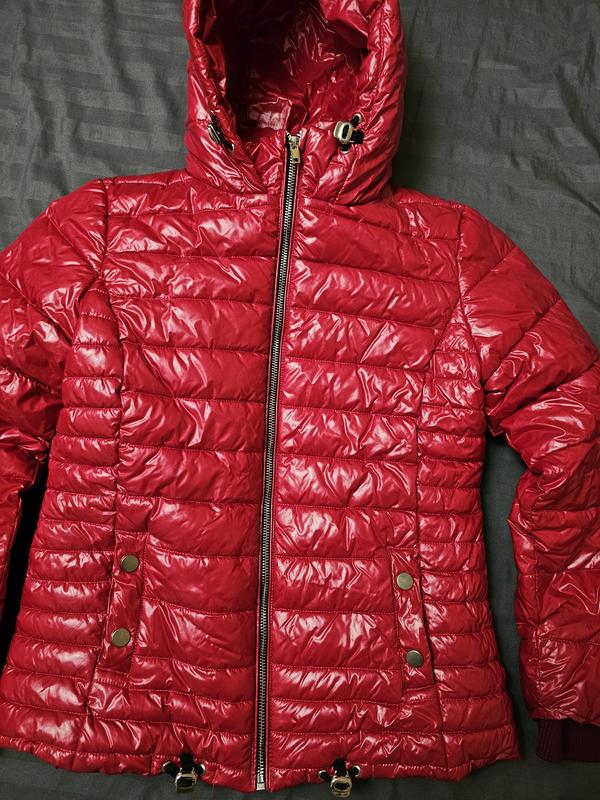 Зимова курточка, малиново-червоного кольору, кармашки на флісі , затібаютьсч на кнопки, знизу ширина фіксується