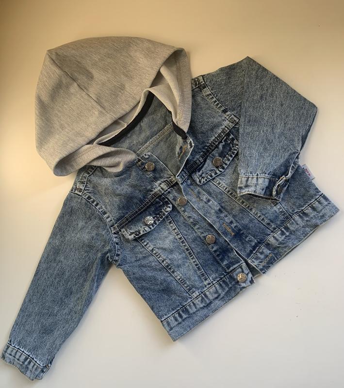 Куртка дитяча, джинсова, з трикотажним капюшоном, 18-24 місяці