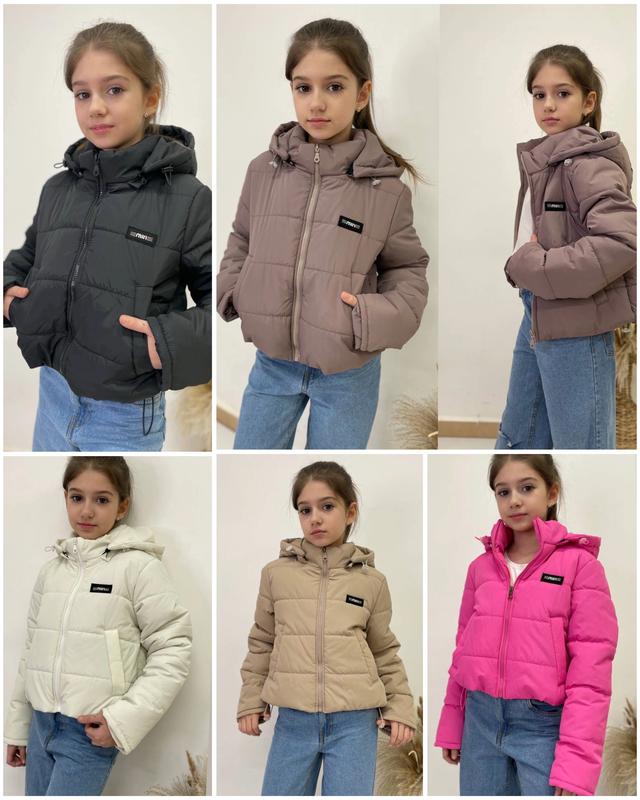 Куртка «Miu» Стильна вкорочена капюшон зʼємний знизу обʼєм регулюється рукава зі змінною довжиною Плащівка -Емі ( мʼяка та стійка ) Наповнювач - синтепон 150 мг/м Підкаладка - нейлон Є кишені Супер якість Ціна 1300 грн Зріст/довжина/пог/рукав від горловини похибка+-2см 134/42/42/57-2шт 140/43/44/61-2шт 146/45/46/64-2шт 152/47/48/67-1шт 158/59/49/69-1шт