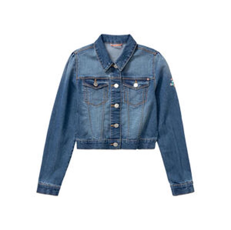 Базовая джинсовая куртка для девочки Классический воротник Нагрудные карманы Застежка на пуговицах Приятно носить благодаря хлопку Короткий крой Материал синий вариант для девочки: 78% хлопок, 20% полиэстер, 2% эластан Размер 152 на 10-11 лет