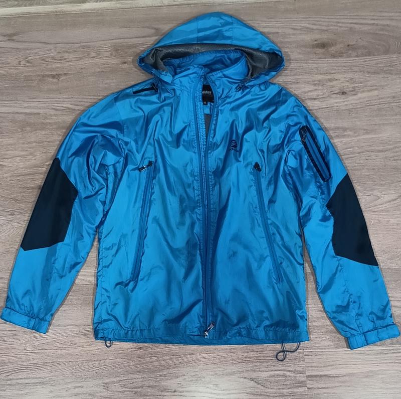 Легка куртка вітровка Adidas,в гарному стані розмір XXL, але йде на L Дліна-75, плечі -48,5, ширина ПОГ58,низ54,рукав від плеча 67