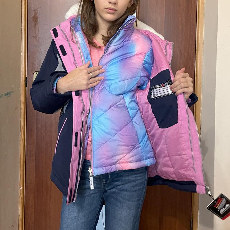 Куртка для дівчинки ZeroXPosur 3 в 1 на зріст 140-145 см. Можна носити як окремі три куртки: 1-водостійка, вітронепроникна, весна/осінь ; 2-водостійка, тепла, на легкий морозець; 3- чудове поєднання обох курточок на зиму - тепло і сухо :)