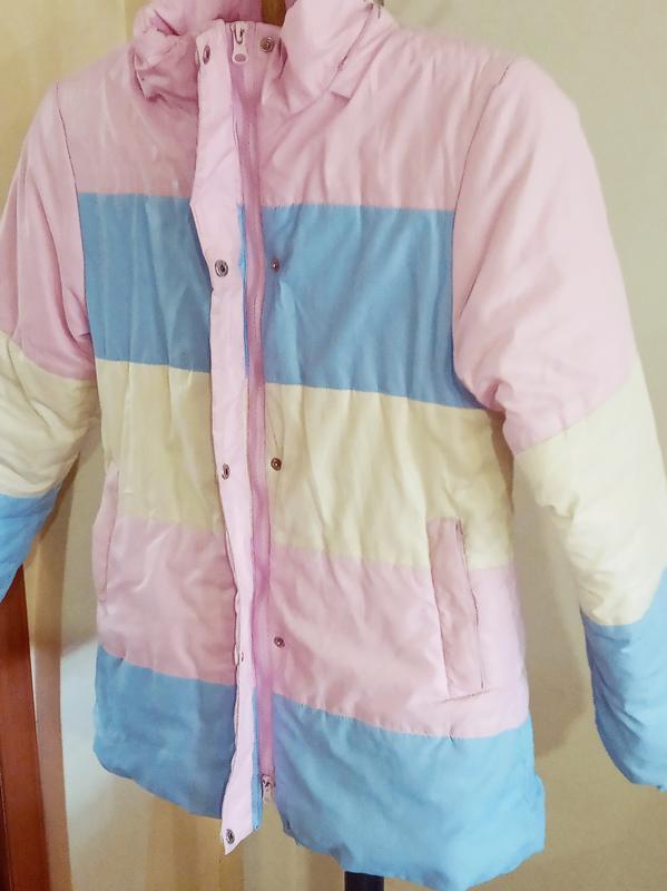 Продам куртку для дівчинки, зріст 152см (подовжена), верх нейлон, підкладка поліестер на синтепоні, без капюшона, триколірна, весна - осінь,
