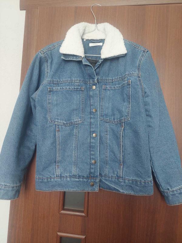 Колір як на останньому фото на кнопках Куртка з утеплювачем, всередині стьобана. Підійде на дівчинку і на хлопчика. Заміри: ширина під руками - 48 см плече - 13,5 см рукав - 54 см рукав з плечем - 67 см Довжина - 60 см Одягали 1 раз