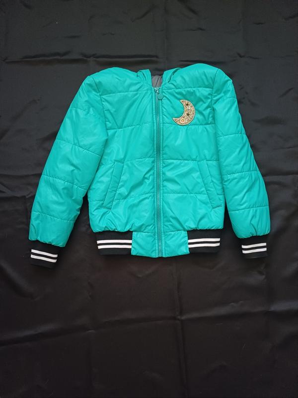 Демісезонна куртка на дівчинку ,на зріст 140см. Заміри довжина 55см, довжина рукава 51см, ширина напів 40см, плечі 37см. На капюшоні незначні плями, показано на фото.