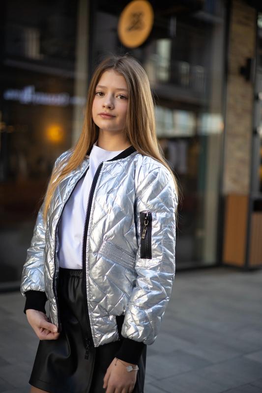 😍Крутий Бомбер😍 Верх-плащівка фольга стьобана Утеплювачі-синтепон 100 Підкладка-нейлон Заміри: р.134 довжина/рукав/пог 47/45/41см-2шт р.140 довжина/рукав/пог 49/47/43см-2шт р.146 довжина/рукав/пог 51/49/44см-3шт