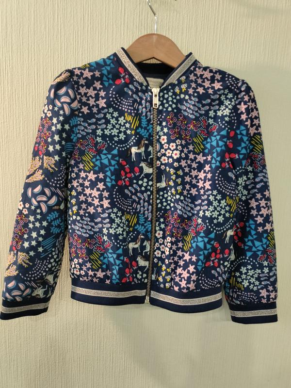 В очень красивом состоянии яркая детская куртка на девочку 5-6р. Длина по спинке до низа 38см, длина рукава с плечом 48см, ширина под подмышками 34см.