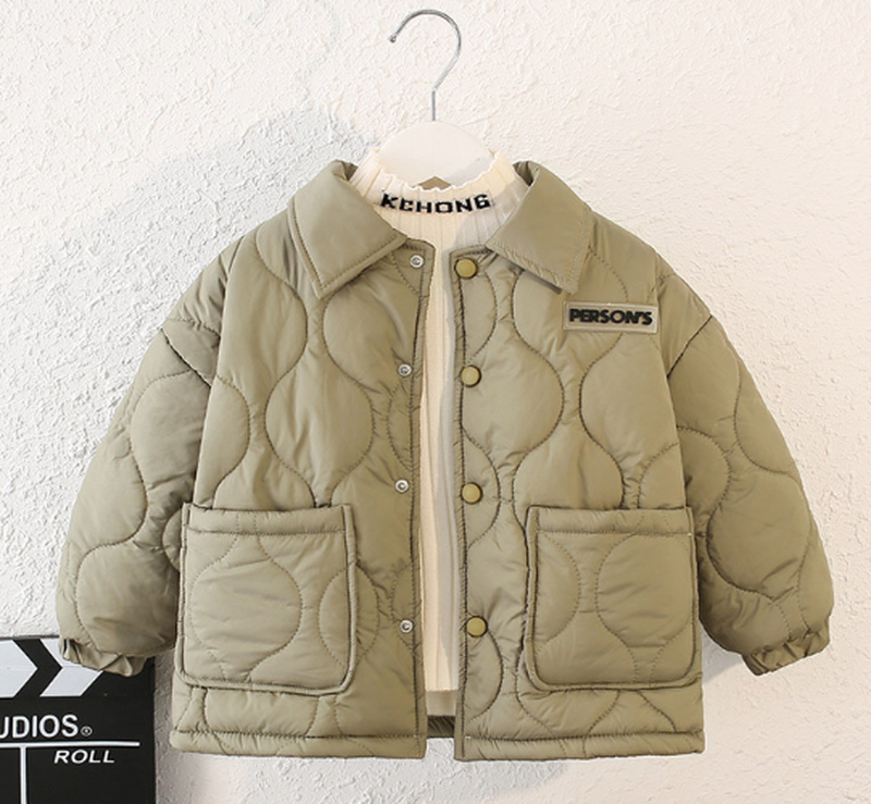 Легкая демисезонная куртка для ребенка. Сверху ветронепродуваемый материал. С воротничком. Наполнитель - тонкий слой синтепона. Флисовая подкладка внутри, в рукавах - гладкая полиэстеровая. Спереди накладные карманы. Застежка: кнопки. Состав: 100% полиэстер.