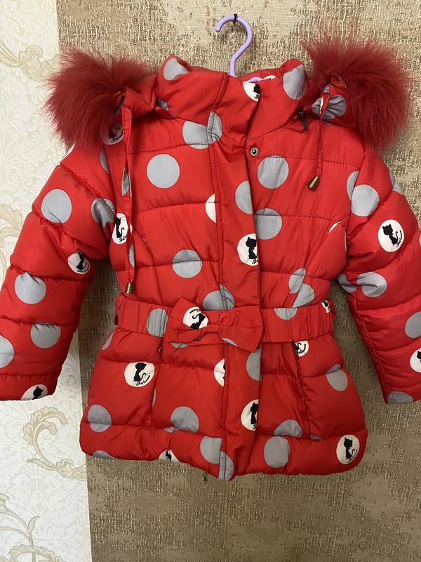 Куртка тепла для дівчинки в новому стані, не одягалась, без дефектів, з карманами та поясом, хутро капюшон знімається