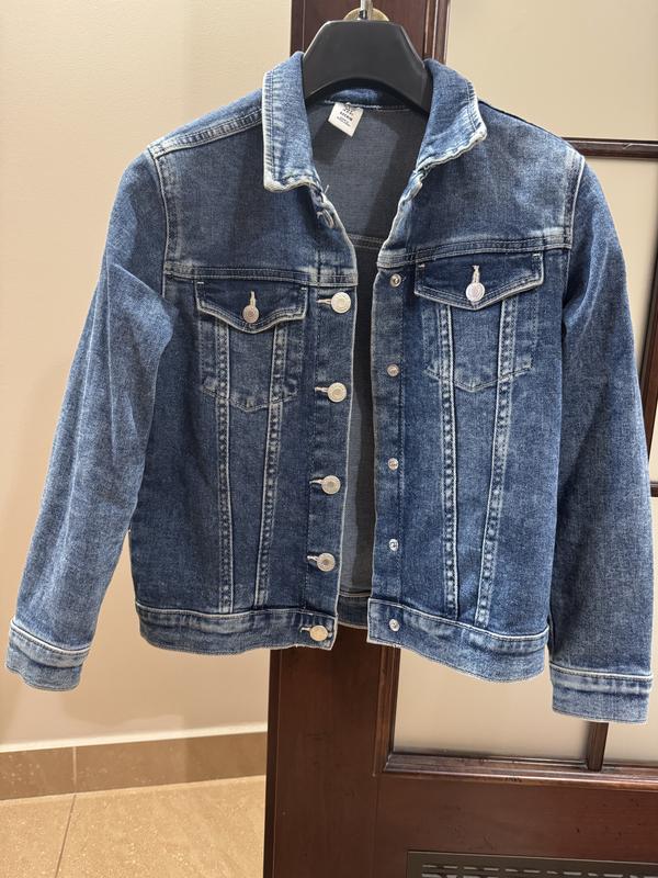 Джинсовая куртка на девочку, на кнопках, почти новая, 8-9 лет