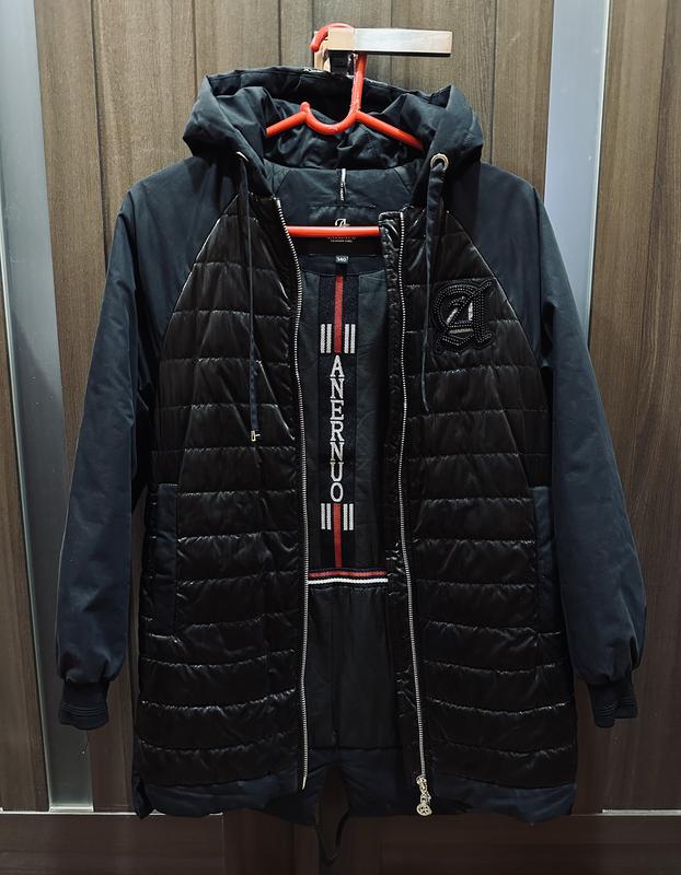 Куртка на девочку на рост 140см. В хорошем состоянии. Черная ткань со вставками лака и камушков. Ширина под рукавами 45см, длина от плеча до низа 66см