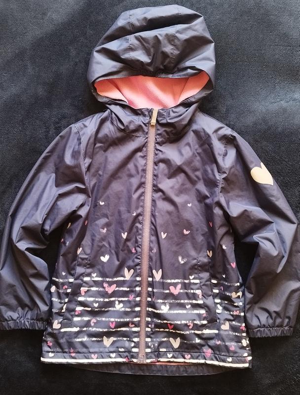 Куртка в гарному стані, лише витерся малюнок. Повністю на флісі, копюшон також. Легка і зручна для прогулянок. Верх не просувається і швидко сохне. Довжина 50, ПОГ 36, рукав 43.