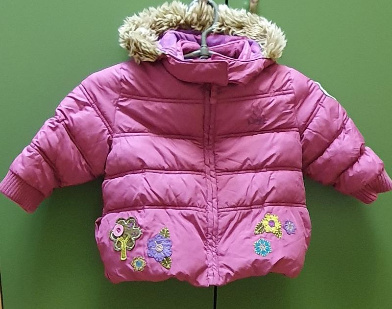 тепла курточка для дівчаток на 1 рік з капюшоном подкладка флісова утеплена сінтепоном
