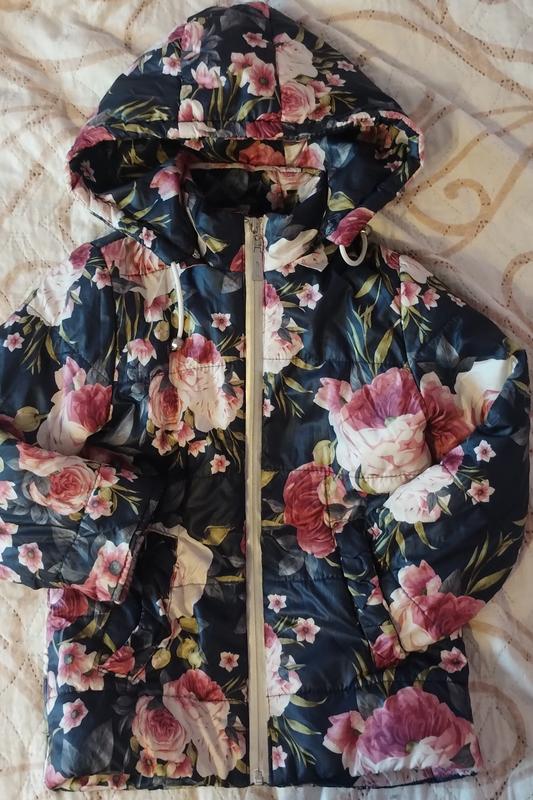 Весенняя курточка для девочки.Длина -49 см,грудь-36 см,плечи-28 см, длина рукава-43 см.Подкладка целая, но не прочёлая, без внешних и внутренних повреждений.Капишон на молнии.