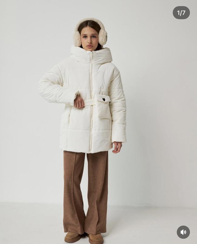 Стан супер. Тканина не промокає, можна витирати й мокрою серветкою. Тепла. Можна носити з поясом і без. Капюшон глибокий. Буде на ріст дитини 134-146см.