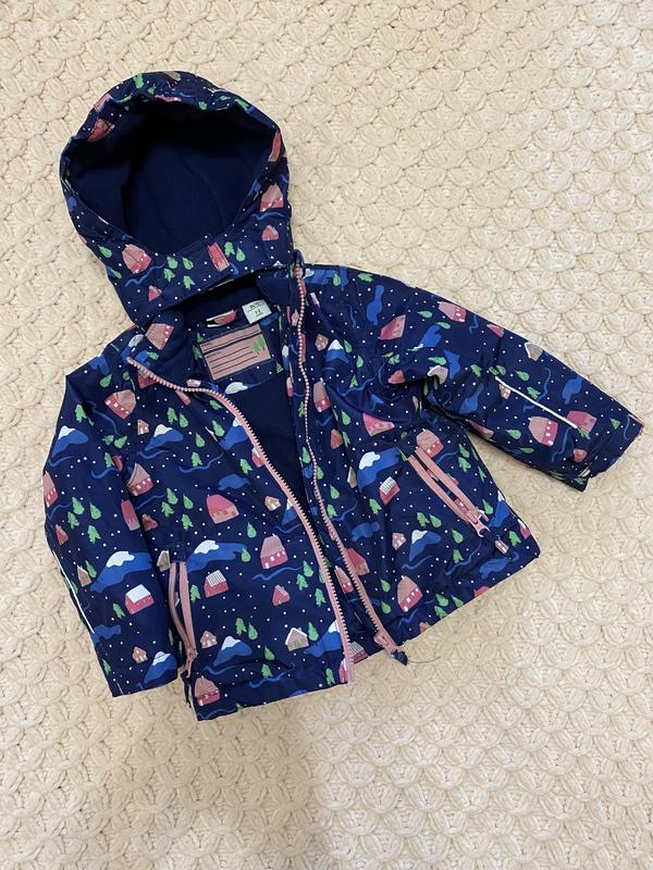 Лижна куртка Підійде на сезон: осінь/єврозима/весна - Верхня тканина непродувна та водонепроникна - Є світловідбиваючі елементи на рукавах - Капюшон - Додаткові липучки на руках та капюшоні (для підборіддя) - кармани - Всередині антисніжна резинка на кнопках для додаткового захисту від вітру і снігу Розмір по бірці: 86/92