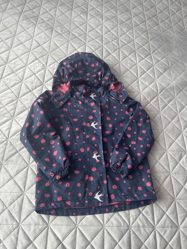 В ідеальному стані. Ластівки на куртці світловідбиваючі. Розкішна дитяча термокуртка на флісі, дощовик, вітровка від tcm tchibo (Чібо), Німеччина. Чудова німецька якість. Оригінал. Розмір вказано 122-128 см, орієнтуйтеся на заміри. Заміри зроблено зверху виробу, __________________________ напівобхват грудей - 42 см довжина від плеча - 44см довжина куртки куртка з підкладкою з приємного м'якого та теплого мікрофлісу, манжети можна регулювати по ширині за допомогою липучки, а капюшон можна розстебнути, коли не йде дощ. Відбивачі забезпечують кращу видимість. Колір: синьо-рожевий Матеріал: 100% поліестер - Вітрозахисний, водонепроникний та дихаючий. - З екологічно чистим просоченням ecorepel®. - М'яка тепла підкладка із мікрофлісу. - Знімний каптур. – Верхній матеріал витримує товщину води до 3000 мм.