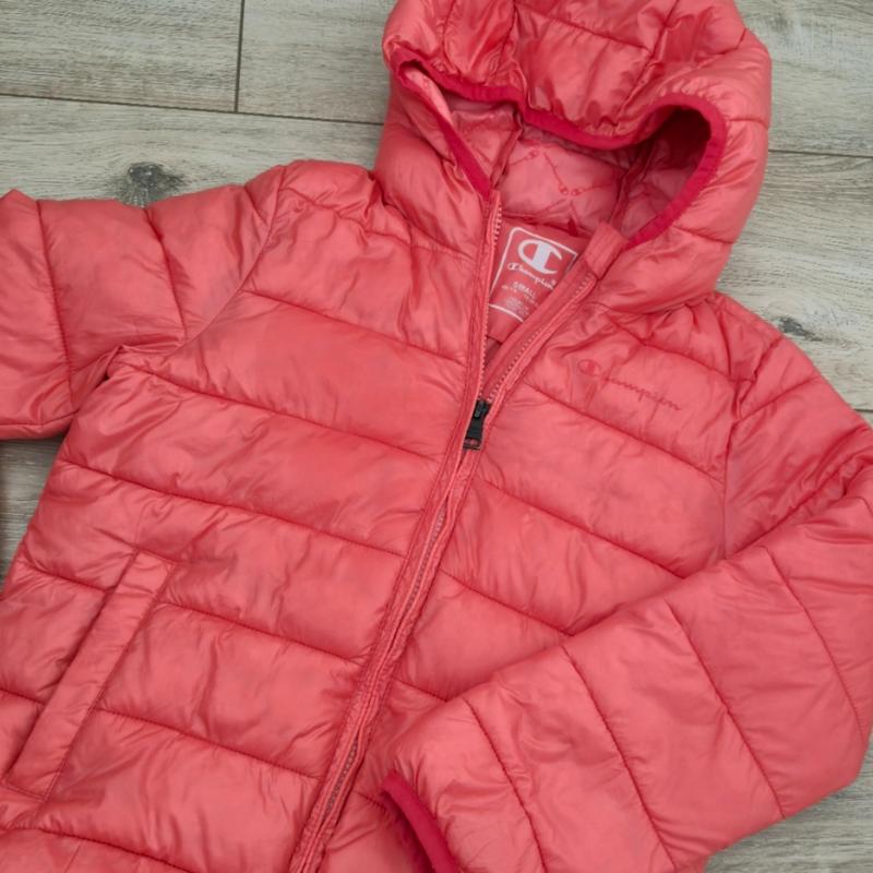 куртка осіння від champion,,стан гарний, маленька пляма на рукавчику(можливо виводиться), в носці не видно, фото додала, розмір 7-8р 128см