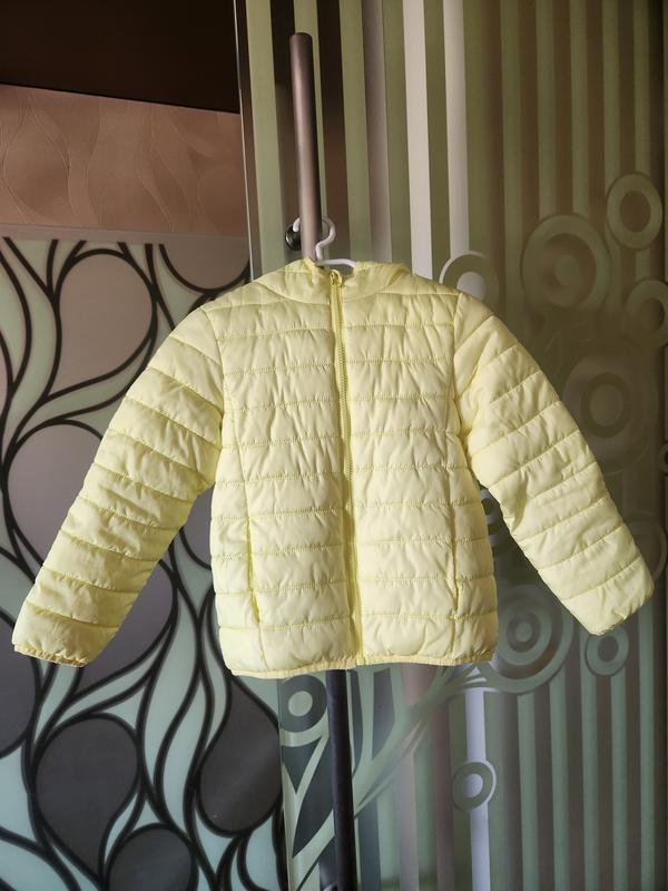 Куртка на ріст 128 см , є пару нюансів малозамітна плямка та надірвані кишеньки. А так все ок, колір насичений жовтий