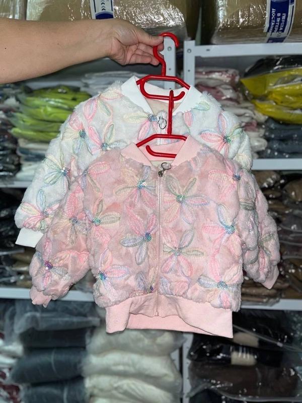 Стильна куртка-бомбер Вшиті квіточки з бусинками На рукавах манжет резинка Застібка блискавка В середині повністю на флісі Рукав від горловини Заміри 90р-довжина 36см,ширина 36см,рукав 37см 100р-довжина 40см,ширина 36см,рукав 40см 110р-довжина 41см,ширина 38см,рукав 44см 120р-довжина 42см,ширина 45см,рукав 47см