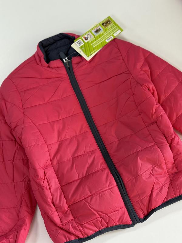 В наявності осіння двухстороння курка. З однієї сторони колір малина, інша сторона темно-синій колір. Тепла, легка, без капюшона. Комір стійка. Є бокові кишені з однієї та іншої сторони курки. Куртки на зріст 110-116см (трішки маломірять) Рукав 39см Довжина 44см По грудях 36см Куртка також є на зріст 146-152см Рукав 54см Довжина 61см По грудях 44см Та є одна курка на зріст 158см Рукав 60см Довжина 64см По грудях 48см