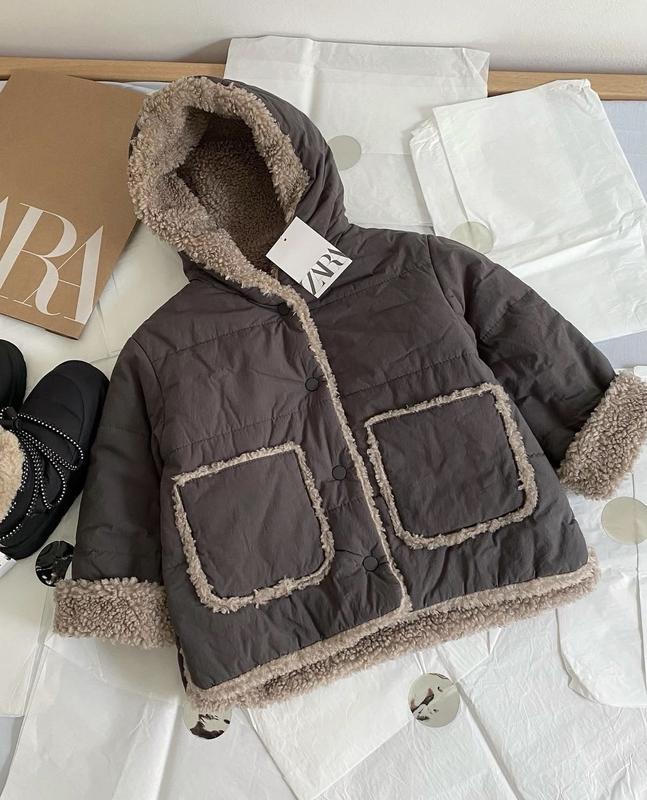 Колір вживу як на фото на дівчинці! Неймовірно стильна курточка зі штучної овчини Zara,Оригінал! Привезена з Іспанії з офіційного магазину Утеплена тоненьким шаром синтепону+підкладка плюшева Тедді Розмір 4-5років(на зріст 110) 💳Ціна 1149грн, на ціннику була €42 Заміри👇 Довжина 43/46(позаду трішки подовжена); Ширина 40; рукав від плечового шва 36(і можна підгорнути як на фото) а від капюшона 46(і можна підгорнути як на фото) довжина рукава якщо в підгорнутому вигляді то 32/41 Склад: зовні тканина 100%бамбук; підкладка 100%поліестер