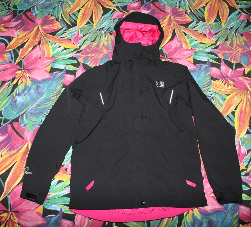Продам куртку для дівчинки на вік 13 років або на зріст 158 см. Куртка чорного кольору зовні з яскраво-рожевою підкладкою, яка також видно на внутрішній стороні капюшона та куртки. Виготовлена з водовідштовхувального та дихаючого матеріалу нейлону з підкладкою з поліестеру, що забезпечує комфорт у різних погодних умовах. Капюшон ховається у комір куртки. довжина куртки 66 см плечі куртки 44 см обхват грудей до 100 см довжина рукоя 57 см довжина рукоя всередині 52 см