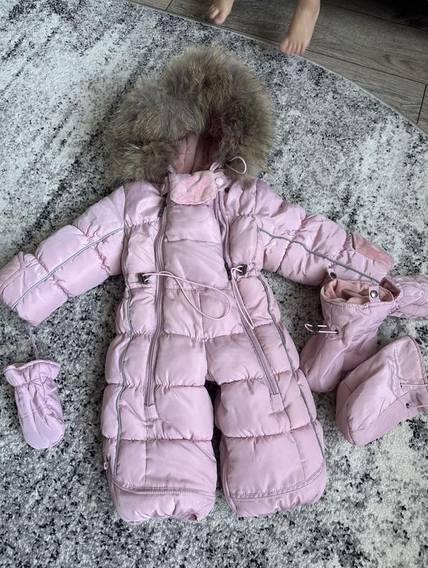 Дуже дуже теплий комбінезон трансформер. Його можна використовувати як для найменших оскільки він робиться як конверт та навпаки. Розмір 74 в комплекті йдуть рукавички та захист на ніжки, хутро відстібається .