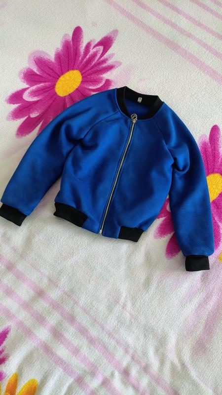 Синя бомберка.В ідеальному стані, блискавка робоча дірок, плям нема.Можна одягати як вітровку або як кофту. Підходить як для дівчаток так і для хлопчиків