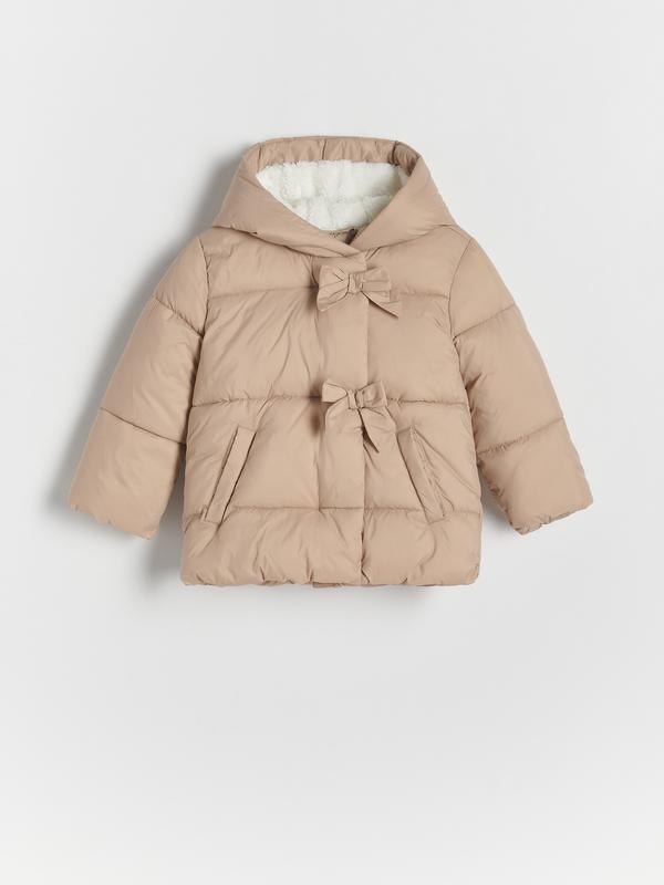 Демісезонна куртка на дівчинку reserved бежева з утепленим капюшоном