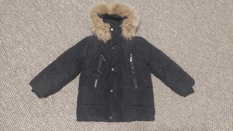 куртка детская на рост (на этикетке до 130) фактически 116-122 см. В хорошем состоянии. подойдет и мальчику и девочке. Украшена отстегивающимся натуральным мехом.