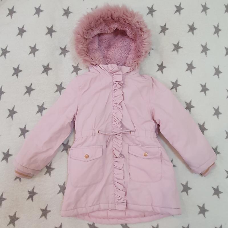 куртка на 5- 6 рочків ,в хорошому стані, капюшон не відстібується . нюанс на останньому фото ,але на носіння не впливає заміри: Рукав 41 Плечі 30 Довжина 58 позаду,попереду 53 Талія 33