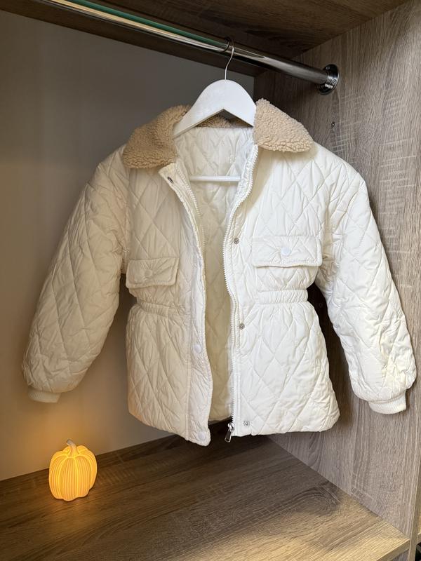 Курточка молочного цвета с бежевым воротничком. Демисезонная. Хорошее состояние. Носилы недолго - ребенок быстро вырос. Чистенькая, благоухающая, выстиранная. На последнем у руки пятно, которое не отапывалось после машинной стирки. Ее и не видно, но можно попробовать каким-то пятновыводителем