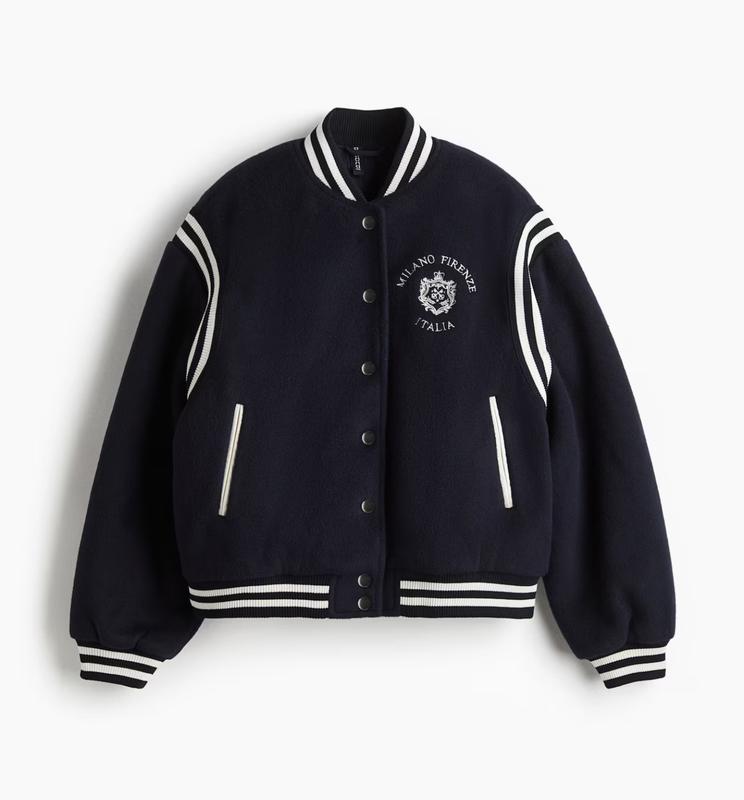 Легко утеплена куртка H&M з м'якого флісу. Розмір Л. Оверсайз. Ребристий комір-стійка, застібки на кнопках та вишивка на грудях. Спущені плечі, бічні прорізні кишені. Ребристі манжети, відвороти та поділ. Повністю на підкладці. Темно-синього кольору. Куртка НОВА В наявності