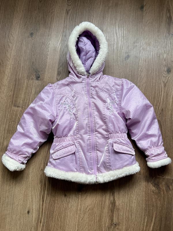 Довжина 48 см Рукав 42( можна підкачати ) Вказано на 4 роки Спереду є маленька пляшка На фото Замок добре працює Стан чудовий , за вийнятком плями Колір рожевий фіолетовий