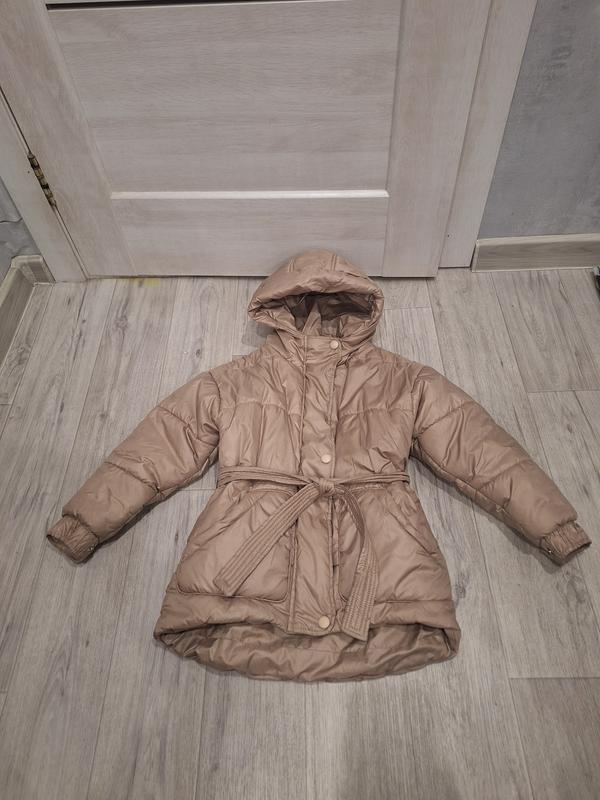 Пуховик під пояс ,розмір 128 Тонкий,але теплий!! Не збивається Дефектів немає Довжина 53/60 Рукав 39 Підмишки45
