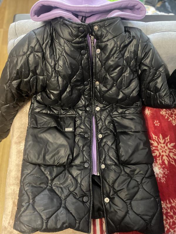Продам зимовий плащик на дівчинку,розмір вказано 140,підійде і на менше,добре переться в машинці,дефекти видно на фото