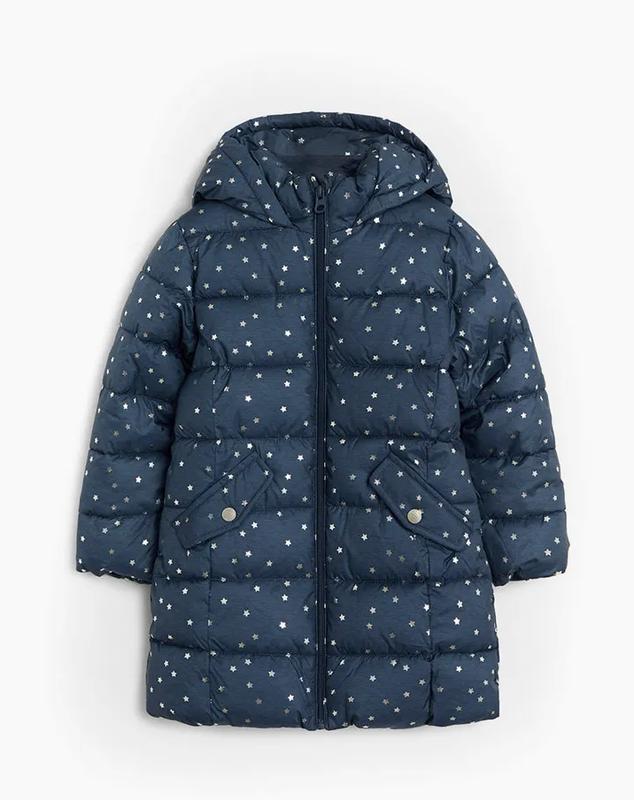 🧥 Дитяча куртка MNG (Mango Kids) Стильна та тепла куртка для дівчинки, розмір 116 см (5–6 років). Колір — темно-синій із принтом білих зірочок ⭐. Модель із капюшоном, застібається на блискавку, має кишені з кнопками. Ідеальний варіант на осінь або теплу зиму. Стан / новий (з біркою).