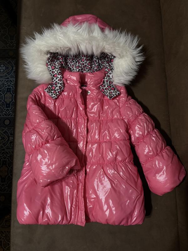 Рожева куртка пуховик на теплу зиму, 18-36 міс (1,5-2-3 роки) По бірці розмір 18 міс, але по замірам буде на довше В ідеальному стані, на останньому фото єдиний нюанс (чорна цятка) Капюшон на кнопках Ззовні тканина по типу лакової