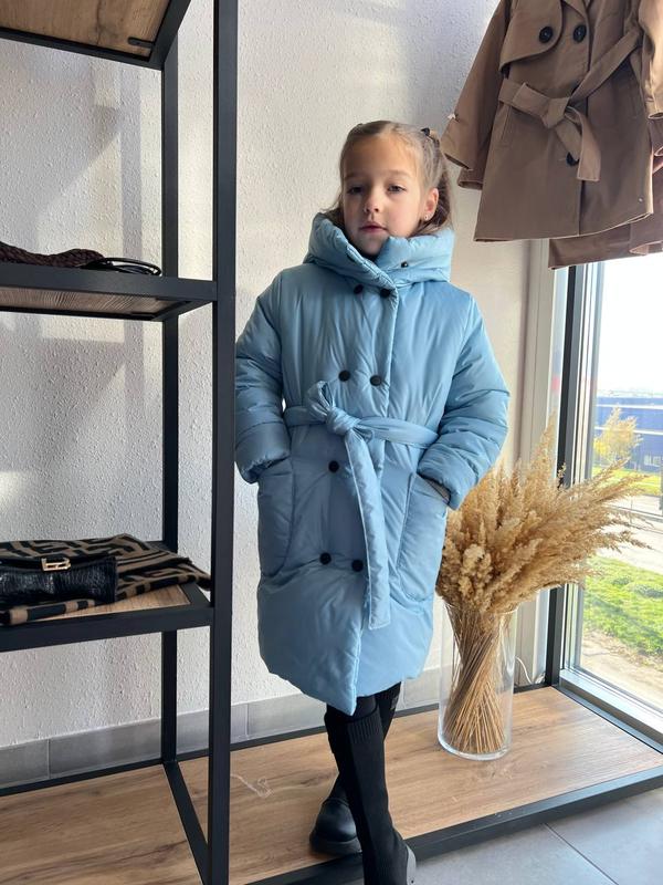 🌬️ Тепла Зимова Дитяча Куртка-Пальто з Поясом та Капюшоном – Стиль та Захист від Холоду! Заголовок для Шафи (Shuafa): 🔥 НОВА! Дитяча Зимова Подовжена Куртка (Пуховик) на Холофайбері, Плащівка, Кольори! Опис товару: Шукаєте ідеальний верхній одяг, який зігріє вашу дитину взимку та подарує стильний вигляд? Представляємо подовжену дитячу зимову куртку (пуховик), що поєднує в собі максимальний комфорт, тепло та останні тренди! ✨ Основні характеристики: Наповнювач: Холоcофт – легкий, гіпоалергенний матеріал, що відмінно утримує тепло, не збивається після прання і швидко сохне. Матеріал верху: Високоякісна плащівка з водовідштовхувальним ефектом. Надійно захистить від мокрого снігу та вітру. Дизайн: Сучасний подовжений крій (пальто), який повністю закриває поперек. Комір та Капюшон: Високий комір-стійка та глибокий капюшон для додаткового захисту від негоди. Капюшон можна зафіксувати. Застібка: Подвійний ряд стильних великих ґудзиків (можливо, прихованих під планкою) та надійна блискавка для кращої теплоізоляції. Пояс: Широкий пояс у тон куртки, що зав'язується на талії. Дозволяє підкреслити фігуру та краще зберегти тепло, створюючи елегантний силует. Кишені: Зручні, глибокі бічні кишені. Кольори в наявності: Представлена у трендових кольорах – Молочний/Кремовий (Бежевий), Ніжно-блакитний (Небесний), Пудрово-рожевий/Кемел, Класичний Чорний (Графіт).