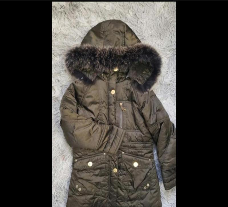 Тепла подовжена куртка на теплу зиму або прохолодну весну-осінь для дівчинки. КОЛІР: хакі. РОЗМІР:110-116. По всій довжині застібається на замочку та кнопках (видно на фото 4). Зсередини в поясі з обох боків регулюється шнурівками (видно на фото 6 і 8). Капішон знімається при потребі. МАТЕРІАЛ ВЕРХУ: вітро і водонепроникна плащівка. УТЕПЛЕННЯ: синтепон і хутро. ЗАМІРИ: загальна довжина від плеча до низу -57см., довжина рукава -45см., півобхват грудей- 35см. СТАН: Є НЕДОЛІК у вигляді не застібаючих двох кнопок посередині (видно на фото 4), але при носінні це майже незамітно. Решта все в порядку.
