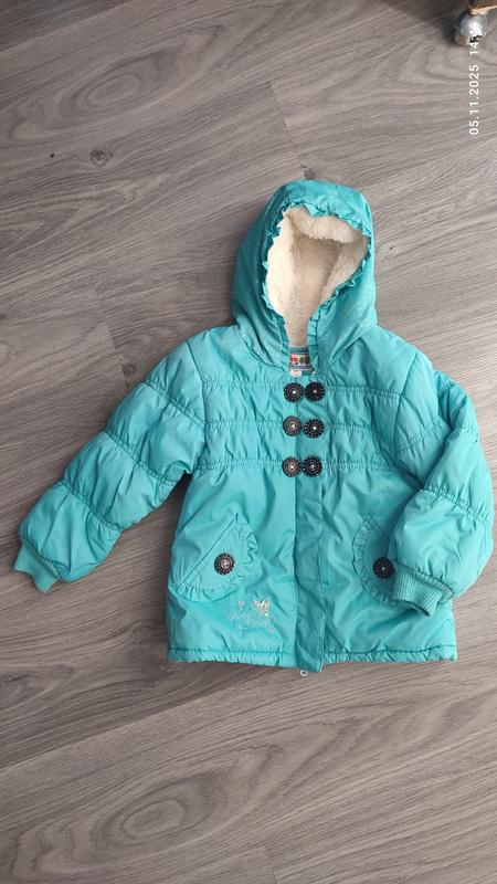 Курточка для дівчинки Тепла, легка та зручна. Усередині м'який та приємний до тіла хутряний підклад. Капюшон також утеплений. Стан хороший Розмір орієнтовно: 2-3 роки Замірчики: Довжина 42 см Рукав від плеча 36 см ПОГ - 31 см