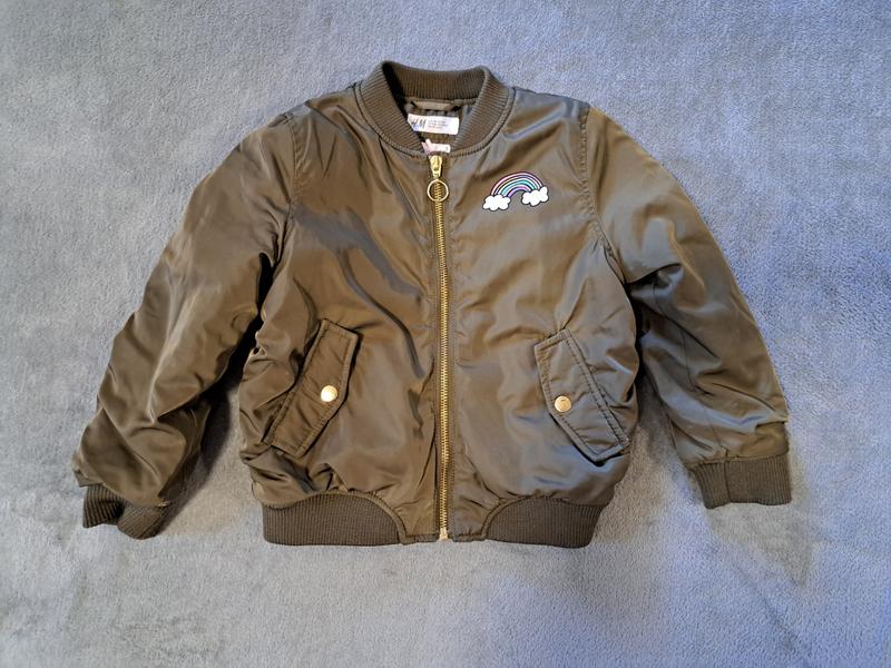 Куртка-бомбер для дівчинки 4-5 р вказано,але можна на 3-4 роки. Має 2 кишені. Малюнок в гарному стані. Стан куртки ідеальний,має лише трохи потертості на кнопках на кишенях. Заміри: Довжина 40 см Рукав 38 см Ног 39 см Резинка понизу 30 см,тягнеться добре