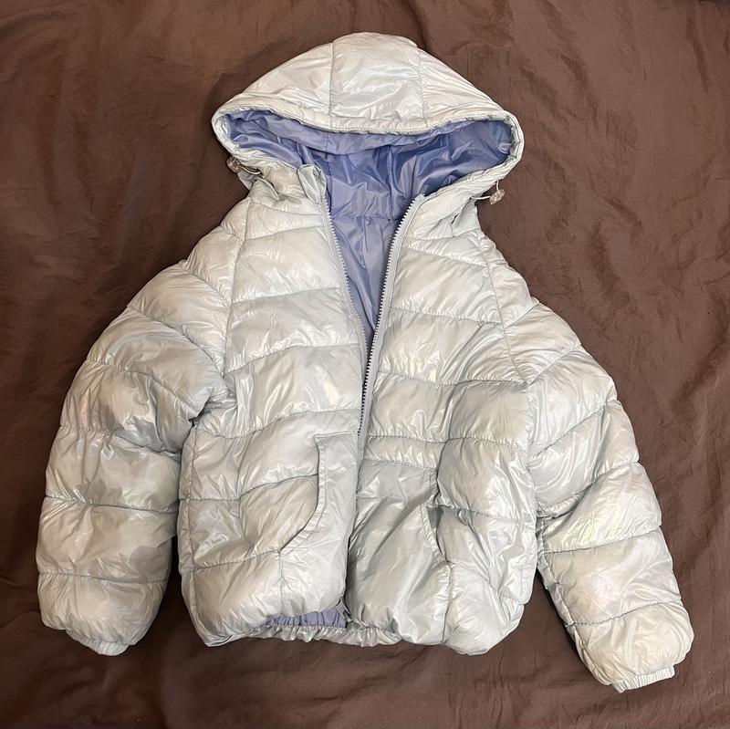 Стильна курточка для дівчинки мідного голубого кольору з блиском, ріст 120.