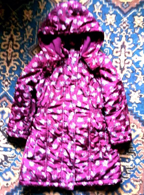 Тепла на міху куртка подовжена з капюшоном у квіти, пояс на резіночці